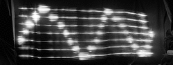 Photographs of a representation of an electromagnetic radio wave with S.W.I.M. (Sequential Wave Imprinting Machine), which represents traveling waves in stationary spacetime coordinates (i.e. as a "sitting wave")[12]