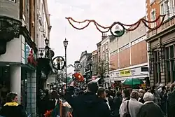 Lincoln Christmas Market was the first Christmas market in the United Kingdom. It was first held in 1982,[4] after Council Leader, Jim Sullivan, Bob Hodson and Charles Ireland visited Neustadt an der Weinstrasse (Lincoln's twin town) and were impressed by the Neustadt Christmas Market. When they came back to Lincoln, they set up their own Christmas market consisting of just eleven stalls. The market was cancelled in 2010 due to severe weather conditions both in the city of Lincoln and the surrounding region.[5] This was the first time the market had been cancelled in over 28 years. In 2017, the last day of the market was cancelled due to the forecast of bad snow. It turned out that the snow never materialised and Lincoln City council were left embarrassed by the decision as they received much criticism from the public and press. The market was held for the last time in 2022, being officially cancelled by City of Lincoln Council's executive committee in February, 2023.[6]