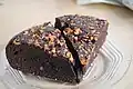 Brownies or sponge cake topped with chocolate icing and sprinkles |