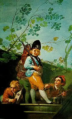 This is a complete list of Francisco Goya's 63 large cartoons for tapestries (Spanish: cartones para tapices) painted on commission for Charles III of Spain and later Charles IV of Spain between 1775 and 1791 to hang in the San Lorenzo de El Escorial and El Pardo palaces. The word "cartoon" is derived from the Italian cartone, which describes a large sheet of paper used in preparation for a later painting or tapestry.[1] Goya's were executed on canvas which was then woven into wool tapestry to a large mural scale. While many of the large finished works are today in the Prado Museum, the original sketches were sold as works in their own right.[2]