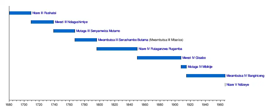 Ntare V of BurundiMwambutsa IV of BurundiMutaga IV of BurundiMwezi IV of BurundiNtare IV of BurundiMwambutsa I of BurundiMutaga III of BurundiMwezi III of BurundiNtare I of Burundi