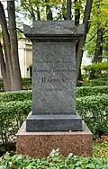 ^Piryutko, Yuri Minayevich (2011). Некрополь мастеров искусств // Исторические кладбища Санкт-Петербурга [Necropolis of the Masters of Art: Historical Cemeteries of Saint Petersburg] (in Russian) (2 ed.). p. 238. ISBN 978-5-227-02688-0.