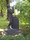During the early Soviet period a number of monuments were stolen or destroyed. The cemetery was officially closed for burials in 1927, though they continued until 1932, and it was decided to turn it into a necropolis museum, displaying historically and artistically significant graves.[2][1] Alongside this was concept of gathering together the graves of the friends and contemporaries of Alexander Pushkin for the 1937 centenary commemorations of the poet's death. The architectural and planning department of Lensovet, the city administration, was tasked with creating a memorial park project.[2] Plans were drawn up by architects E.N. Sandler and E.K. Reimers, with further input from the city's chief architect L.A. Ilyin.[2] The Funeral Affair Trust was established to run the necropolis museum, including removing abandoned gravestones for sale as building materials.[4] The reconstruction radically altered the nature and appearance of the Tikhvin cemetery. With the intention being to create an "artists' necropolis", graves of those from other sections of society were removed. Fewer than a hundred of the original monuments were preserved.[2] Meanwhile, the remains of prominent artists, sculptors, composers and musicians were reburied in the cemetery. Among them were personal friends of Pushkin, including Konstantin Danzas, Anton Delvig, and Fyodor Matyushkin.[2]
