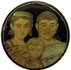 The medallion is often referred to as a portrait of Galla Placidia and her children, but the current scholarly consensus is strongly against this 18th-century identification.[2][3]