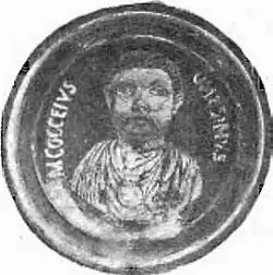 Archeological Museum, Bologna, Italy[15] 4th century[16] 3.5 cm (1.4 in) in diameter[15] Latin: M. COCCEIUS ONESIMUS