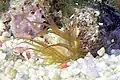 Cerianthus sp. Yes Moderate Not a true anemone (actinarian), but a member of the order Ceriantharia. Can make a very colorful aquarium specimen, colored with pinks, purples and sometimes shades of fluorescent green.