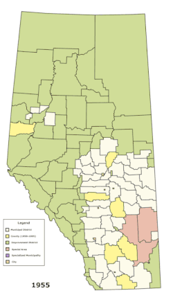 23. ^ a b c d e "Changing Numbers of All Municipal Districts Throughout the Province" (PDF) (PDF). The Alberta Gazette. April 14, 1945. Retrieved October 2, 2013.