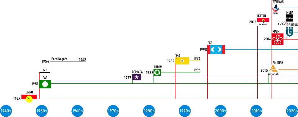 Timeline of Malaysian political parties with origins from UMNO since 1946