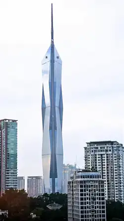 Malaysia is home to one of the largest congregations of skyscrapers in the world. The country ranks fourth in the global list compiled by the Council on Tall Buildings and Urban Habitat (CTBUH), with 518 recorded structures built exceeding the height of 150 metres (492 ft).[1] The country's first skyscraper was built in Kuala Lumpur in 1978, and since then the city has one of the tallest skylines in the world.[2] Besides Kuala Lumpur and its surrounding metropolitan area, most Malaysian skyscrapers are built either in George Town or Johor Bahru.[3] Since 2023, Merdeka 118 in Kuala Lumpur has been the tallest skyscraper in Malaysia. Built with an architectural height of 678.9 metres (2,227 ft), it contains the tallest observatory installed in a spire and is currently the world's second tallest building or man-made structure.[4]
