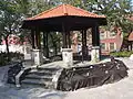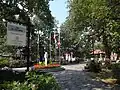 Parc du Portugal is located on Saint Laurent Boulevard between Marie-Anne Street and Vallières Street. The park with azulejos was founded in 1953,[2] created by landscape architect Carlos R. Martinez to honour the city's Portuguese community. It was renovated in 2003 to mark the fiftieth anniversary of the Portuguese community in Montreal.[3] It features a small drinking fountain by artist Rui Dias, which was renovated in his entirety by porcelain artist Sol Labos Brien. The original ceramic tiles were losing their design due to weather changes and were replaced by thick porcelain tiles. Prominent Canadian poet and musician Leonard Cohen lived in a home adjacent to the park, on St. Dominique Street, for much of his life.