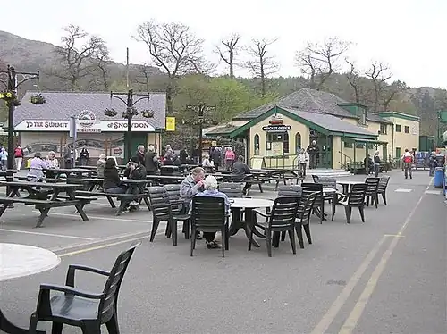 The station houses the headquarters of the tourist railway which climbs for 4.7 miles (7.6 km) from Llanberis to the summit of Snowdon, the highest peak in Wales.[2] The station stands in the valley bottom at an altitude of (353 ft (108 m)), the summit station stands at 3,493 feet (1,065 m), 68 feet (21 metres) below the summit of the mountain.
