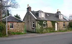Blaeu's map of 1654 shows a settlement names "Lons"[9] In 1747 Loans is marked as such with four enclosed areas of land and dwellings with Scallachmill nearby on a road from Fullarton to Irvine.[10] By 1775 Loans is shown as a cluster of buildings on the Irvine to Ayr road with a road now also running to Dundonald.[11] By 1832 Loans is shown with a toll and two additional roads, both running towards Troon and the coast.[12] The 1857 OS Map shows a number of buildings at Sculloch Mill, Robertloan House and two toll bars and associated houses.[13] By 1897 the school and smithy are shown with a nursery with greenhouses established near the crossroads.[14]