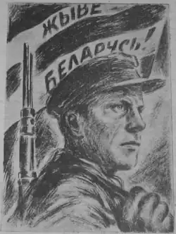 In December 1917, the First All-Belarusian Congress displayed the flag with the inscription "Long Live Free Belarus!".[3]
