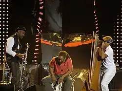 Cato playing the cajón with Marcus Miller and Edmar Castaneda in 2011
