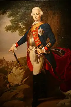 - ^ Genealogie ascendante jusqu'au quatrieme degre inclusivement de tous les Rois et Princes de maisons souveraines de l'Europe actuellement vivans [Genealogy up to the fourth degree inclusive of all the Kings and Princes of sovereign houses of Europe currently living] (in French). Bourdeaux: Frederic Guillaume Birnstiel. 1768. p. 68.