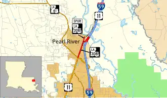 In 2007, LA 41 Spur was eliminated, and LA 3081 assumed part of its route, turning east to the interchange with I-59/U.S. 11 at Exit 5A. The former route of LA 3081 north to the dead-end at the West Pearl River was then designated as LA 3081 Spur.