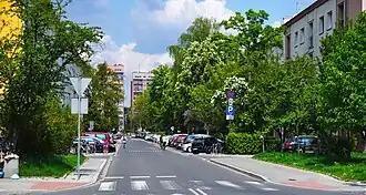 It crosses Bronowicka Street and the railway line from Kraków towards Katowice and the Kraków John Paul II International Airport. Part of the street is shaped as a chestnut tree avenue.[1]