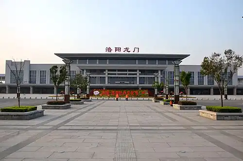 The Luoyang Longmen railway station (simplified Chinese: 洛阳龙门站; traditional Chinese: 洛陽龍門站; pinyin: Luòyáng Lóngmén Zhàn) is a railway station part of the Xuzhou–Lanzhou High-Speed Railway. The station is located in Luoyang, Henan, China. It was previous known as Luoyang South railway station (simplified Chinese: 洛阳南站; traditional Chinese: 洛陽南站; pinyin: Luòyáng Nán Zhàn).