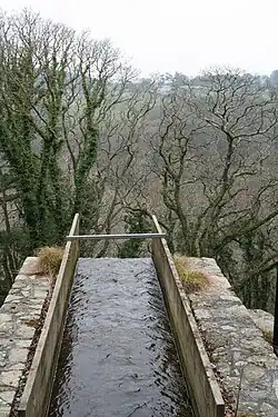 The end of the leat from Luxulyan, brought across the valley via the Treffry Viaduct.[1]