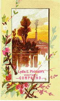 Like many women of her time, Pinkham brewed home remedies for which she continually collected recipes. Her remedy for "female complaints" became very popular among her neighbors to whom she gave it away. One story is that her husband was given the recipe as part payment for a debt.[6] Whatever truth may be in this, the ingredients of her remedy were generally consistent with the herbal knowledge available to her through such sources as John King's American Dispensary, which she is known to have owned and used.[4]