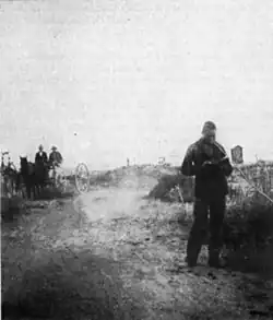 A railroad worker named Fred Schum was the sole eyewitness to Louise's murder. He recounted all of the girl's actions that afternoon and positively identified her in the field, though he could not provide any description of the second person he saw with Louise while watching from 50 yards (46 m) away. Schum reported that Louise did not scream during the attack, though he admitted that in the moment he was unable to determine whether she was being attacked or was simply playing with the other person. The buggy continued on without either person and arrived at the Frost home some time later, prompting a search.[9] Newspaper reporting of the attack speculated that, once found, the murderer would be lynched.[6][8][10]