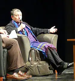 Ulitskaya was born in the town of Davlekanovo in Bashkiria but her family moved to Moscow when she was nine months old.[1] In Moscow, her family lived in communal apartments with many other families.[1] After childhood, she received a degree in genetics from the Moscow State University.[2] After university, she worked for two years at the Institute of General Genetics, before she was fired in 1970 for reading and distributing samizdat literature. After this, she didn't work for about nine years. In this time she was married and then had two kids.[1] Then Ulitskaya began her literary career by joining the Jewish drama theatre as a literary consultant in 1979.[1] She became the Repertory Director of the Hebrew Theatre of Moscow.[3] Her first published short fiction appeared in 1990.[4] The story of her acclaimed novel Sonechka was first published in Novy Mir in 1992.[5] In 1993, she published her first novel with Gallimard in France. Her first novel in Russian was published in 1994.[1] Until 2022, Ulitskaya divided her time between Moscow and Israel.[6] Since 2022, Ulitskaya resides in Berlin, Germany.