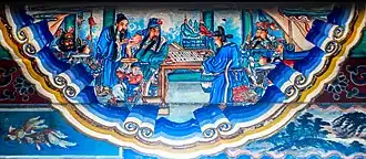 Ma Liang playing Go against Guan Yu while Hua Tuo treats his poisoned arm by scraping the bone (刮骨療毒), portrait at the Long Corridor of the Summer Palace, Beijing