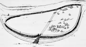 Reconstruction of the Bronze Age settlement of Nitriansky Hrádok.[11] (The empty part of the settlement is unexcavated)