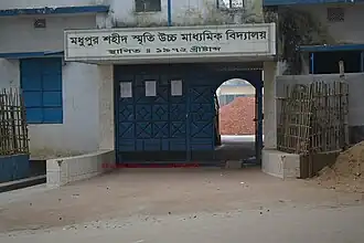 Madhupur Shahid Smrity Higher Secondary School (Bengali: মধুপুর শহীদ স্মৃতি উচ্চ মাধ্যমিক বিদ্যালয়),[2] also known as Madhupur Shahid Smrity School & College, is a non-government educational institution in Madhupur Upazila, Tangail, Dhaka, Bangladesh,[3] established in 1972. The school offers education for students ranging from six to Higher Secondary School Certificate with over 2500 students. Although it was set up for students of surrounding areas, students now come from most parts of Bangladesh. The school is under the direct control of the Ministry of Education.