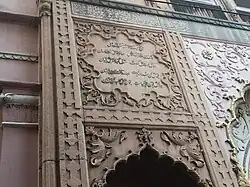 Inscription in Persian language depicting modern constructions of Madrasa Aminia