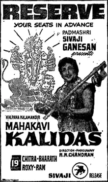 Mahakavi Kalidas (transl.The Great Poet Kalidas) is a 1966 Indian Tamil-language biographical film produced and directed by R. R. Chandran, starring Sivaji Ganesan.[2] It is based on the life of the poet Kalidasa.[3] The film was released on 19 August 1966.[4]