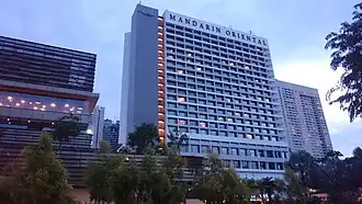 Mandarin Oriental, Singapore is a luxury hotel located in Marina Centre next to Marina Square Shopping Mall and near Suntec City, home to one of Asia Pacific's largest convention centers – the Suntec Singapore International Convention and Exhibition Centre, and the city's financial district. The hotel includes 527 rooms and suites, 6 restaurants and bars, and a Spa at Mandarin Oriental, Singapore.[1]