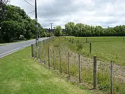 Of the station itself only the loading bank remains, at the side of Flux Road.