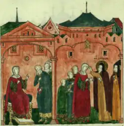 Marfa Boretskaya (Russian: Марфа Борецкая), also known as Martha the Mayoress (Russian: Марфа Посадница, romanized: Marfa Posadnitsa), was a Russian businesswoman and noblewoman. She was the wife of Isaak Boretsky, the posadnik of Novgorod from 1438 to 1439 and again from 1453.[1] According to legend and historical tradition, she led the republic's struggle against Moscow between her husband's death and the city's final annexation by Grand Prince Ivan III in 1478.[2][1]