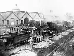 The Baltimore and Ohio Railroad (B&O) was founded on February 28, 1827.[4] On May 21, 1842, the first steam locomotive arrived in Martinsburg and, later that same year, November 10, the first passenger train.[4] The first roundhouse complex was constructed during 1848–1850.