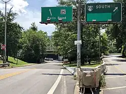 MD 25A is the designation for the 0.58-mile (0.93 km) portion of the Jones Falls Expressway north of the Baltimore Beltway in Brooklandville. The highway begins at the interchange between the Jones Falls Expressway and the Baltimore Beltway, which is a cloverleaf interchange with a flyover ramp for the transfer of southbound I-83 from the east–west beltway to the north–south expressway. The Jones Falls Expressway continues south as I-83 into Baltimore. The Baltimore Beltway carries I-695 west toward Pikesville and both I-83 and I-695 east toward Towson, where I-83 splits north toward York. The four-lane freeway ends at a four-leg intersection with MD 25 (Falls Road) and Joppa Road. Joppa Road heads east toward Towson; MD 25 heads south as a two-lane road from the west leg of the intersection and north as a short four-lane divided highway continuation of the expressway. The only intermediate junction on MD 25A is a direct ramp from MD 25 to southbound MD 25A at the southern point of where the two highways run parallel.[2][37] All of MD 25A is a part of the National Highway System as a principal arterial for its entire length.[2][38]