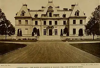 Some of their later, classical country houses also enhanced their reputation with wealthy oligarchs and critics alike. The Frederick Vanderbilt Mansion (1895–1898) at Hyde Park, New York and White's "Rosecliff" for Tessie Oelrichs (1898–1902) in Newport were elegant venues for the society chronicled by Edith Wharton and Henry James. Newly-wealthy Americans were seeking the right spouses for their sons and daughters, among them idle aristocrats from European families with dwindling financial resources. When called for, the firm could also deliver a house-full of continental antiques and works of art, many acquired by Stanford White from dealers abroad. Clarence Mackay'sHarbor Hill (1899–1902), demolished in 1949, was probably the most opulent of these flights of fancy. Though many are gone, some now serve new uses, such as "Florham", in Madison, New Jersey (1897–1900), now the home of Fairleigh Dickinson University.[11]