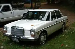 The Mercedes-Benz W114 and W115 are ranges of front-engine, rear-drive, five-passenger executive cars and coupés introduced by Mercedes-Benz in 1968 to succeed its W110 models introduced in 1961. Featuring squared-off modern three-box styling by Paul Bracq, they were manufactured until model year 1976, when the W123 was released.[2]