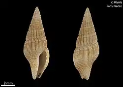| Shell of Metulella columbellata (specimen at MNHN, Paris) | |