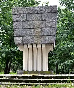The final wave of mass shootings began several months later. A large group of Jews from the school building (renamed Camp Kopernikus) were transported to the Jewish cemetery on 24 December 1942 and murdered there; those who remained (around 250 slave workers) were killed on 10 January 1943 following the Kopernikus prisoner revolt.[1][5] The SS surrounded the premises planning a deportation action, but the prisoners locked themselves inside and resisted, putting the SS in a state of shocked disbelief. After a struggle, the building was eventually set on fire and burned down with the Jews inside.[1] Meanwhile, at the K. Rudzki foundry (renamed Krupp AG) over 100 Jewish workers were extracted on 5 June 1943, and executed as the last.[5] The ghetto was no more.[5] An underground resistance movement developed in Mińsk,[8] and later the Polish Home Army (AK) got a chance to retaliate. On 22 July 1943 the Gestapo chief Schmidt was ambushed and shot by the partisans.[9]