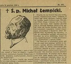 Even before World War I, Łempicki started to cooperate with newspapers, like the Kurier Warszawski. He co-founded in 1903 the "Przegląd Górniczo-Hutniczy",[10] a journal related to questions about mining and metallurgical industry. In Bydgoszcz, he pursued his writings (mainly political and social-oriented) for the "Dziennik Bydgoski".[8]