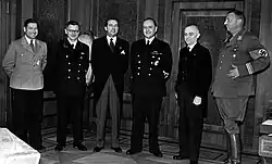 Teleki (third from L) with Walter Darre (fourth) and Döme Sztójay (fifth) in 1940