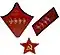 • Rank insignia, big (overcoat): on a rhombic padding, gold coloured border, one to four rhombic red enameled badges, gold coloured Soviet star small/ big