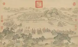 His army was annihilated at the Battle of Maymyo in March 1768.[2][3] He committed suicide, and sent in his queue to the emperor as a token of loyalty.[4] The Qianlong Emperor ordered Manchu general Eledeng'e (also spelled E'erdeng'e (額爾登額)) to be sliced to death after his commander Mingrui was defeated at the Battle of Maymyo in 1768 because Eledeng'i was not able to help flank Mingrui when he did not arrive at a rendezvous.[5]