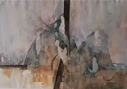Moje Menhardt lives and works in Weitenegg and Vienna, Austria. She previously lived in Buenos Aires, Rio de Janeiro, Munich, Hamburg, Cologne and Eindhoven.[1] After finishing college, she studied law in Vienna and later painting at the Akademie voor Kunst en Vormgeving St. Joost in 's-Hertogenbosch, Netherlands. She completed her studies at the Academy of Fine Arts Vienna. Meisterschule für Malerei Professor Walter Eckert, 1980 with a diploma.[2][3]