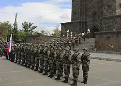 Mother Armenia (Armenian: Մայր Հայաստան, romanizedMayr Hayastan) is a female personification of Armenia. Her most public visual rendering is a monumental statue in Victory Park overlooking the capital city of Yerevan, Armenia.
