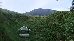 Adjacent to the volcano is a caldera measuring approximately 6-by-8.5-kilometre (3.7 by 5.3 mi), which contains the crater lake Sagara Anak (lit.'Child of the Sea' (in Sasak)) — named for its striking blue coloration reminiscent of the ocean.[3] The lake lies at an elevation of around 2,000 metres (6,600 ft) above sea level and is estimated to be about 200 metres (660 ft) deep.[4] The caldera also features several hot springs.