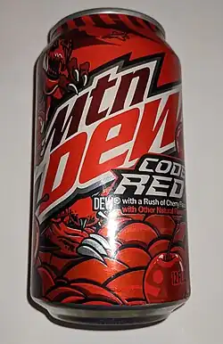 The Mountain Dew flavor DEW-S-A, released for a limited time in 2017 and 2021, was a combination of red, white and blue Mountain Dew flavors, with Code Red serving as the red flavor in the mix.[6]