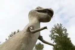 Mountainburg is located along U.S. Route 71, and thrived when this road was the main route in northwest Arkansas. Since the construction of Interstate 540 (now Interstate 49) to the west, it has been a sleepier community. The city park in downtown Mountainburg has since 1980 hosted two large dinosaur models.[5]