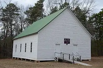 Mt. Zion Methodist Church is a historic church in rural Dallas County, Arkansas. The church is located on County Road 407, roughly 2.5 miles northeast of Carthage. The wood frame clapboarded structure was built c. 1910, and is virtually unaltered since its construction. The main facade has two doors (traditionally one each for men and women), and features very simple vernacular styling. The church is notable for its well-preserved interior.[2]